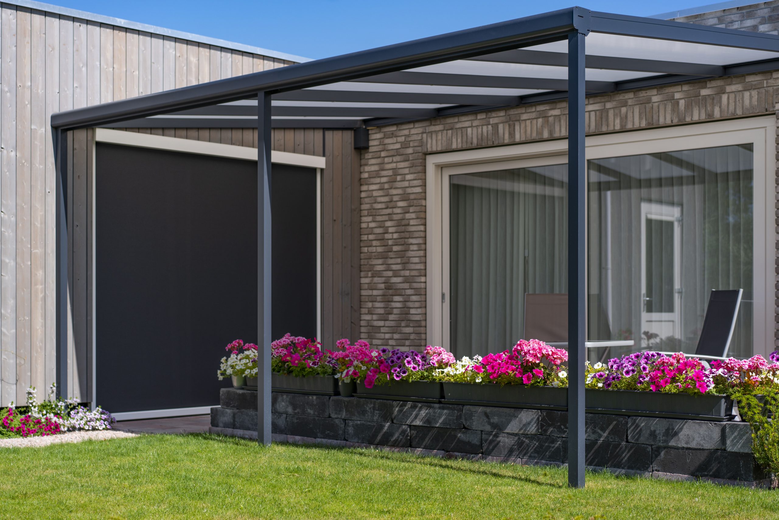 Une paroi vitrée coulissante constitue une protection contre le vent et les intempéries, sans compromettre la luminosité ou la vue. Vous pouvez donc profiter pleinement de votre pergola, jardin ou balcon en toute saison.